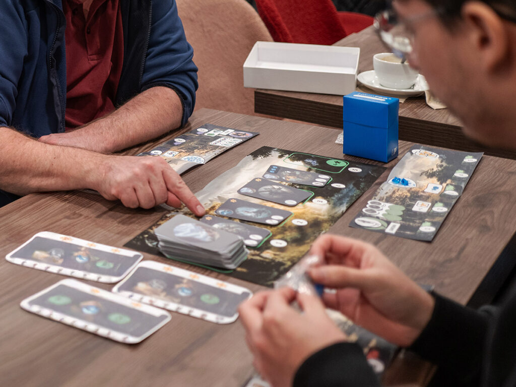 Le travail se fait principalement lors de soirées où chaque personne va tester le prototype de l’autre, avec le prisme de l’honnêteté et de l’exigence. Cela aboutit aussi bien à des critiques mécaniques ou thématiques, à des recommandations d’autres jeux, à des apports en design ou iconographie, qu’à des contacts avec des éditeurs de jeux vers qui te tourner.
